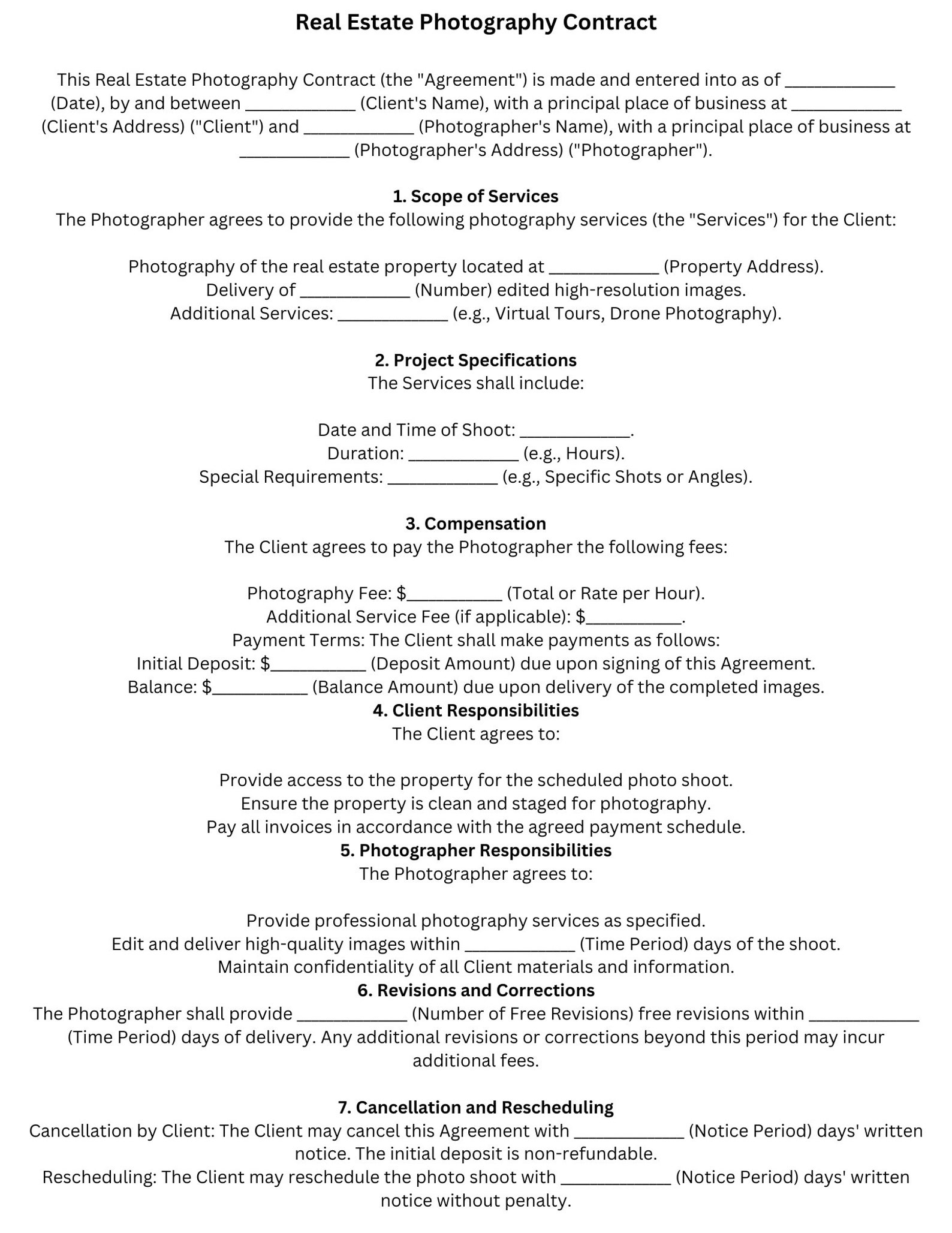 Real Estate Photography Contract Template: Fill out sign online DocHub