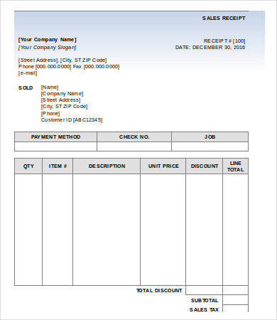 Sales Receipt Template Printable Word Pdf