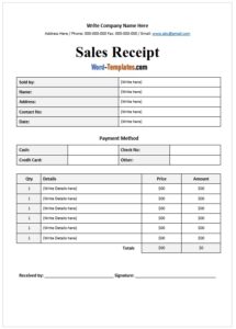 Editable Sales Receipt Templates in Word to Download