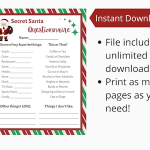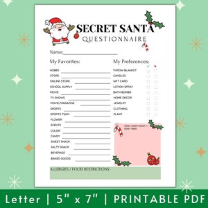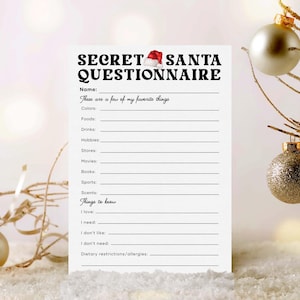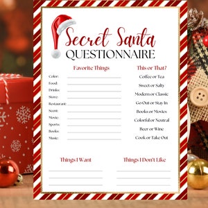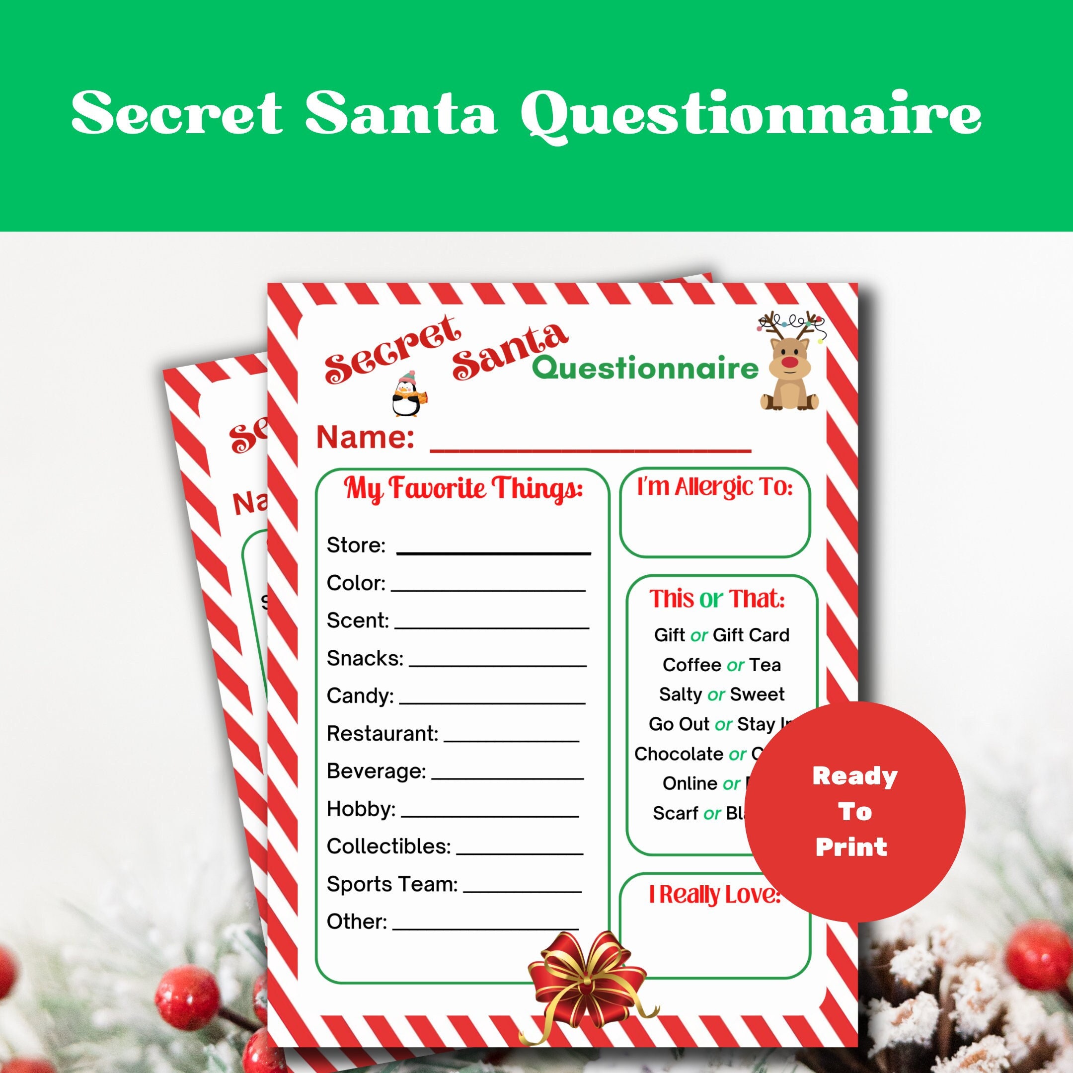 Printable Secret Santa Questionnaire for Gift Exchange/christmas Secret
