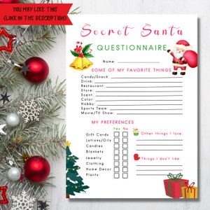 Printable Secret Santa Questionnaire for Christmas Gift Etsy