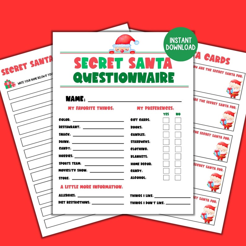 Printable Secret Santa Questionnaire Bundle Christmas Office Party
