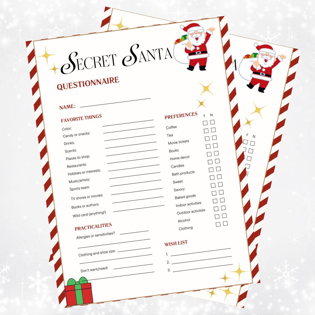 Secret Santa Questionnaire (Free Printable) Fun Money Mom