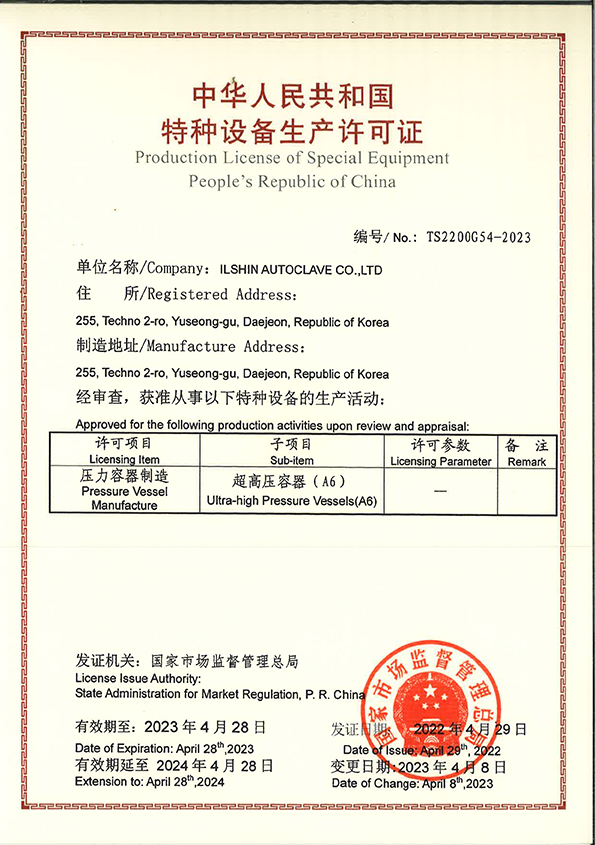 Certification 일신오토클레이브