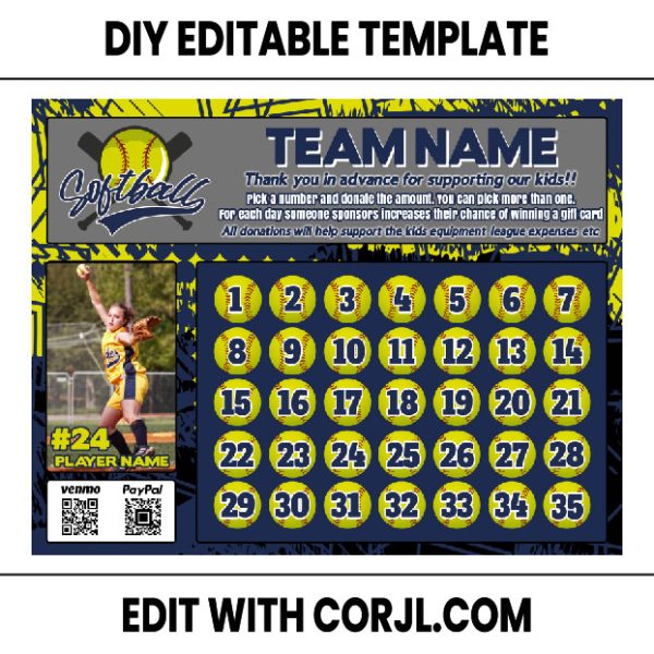 Softball 1 to 35 Fundraiser C and D Designs Co Shop