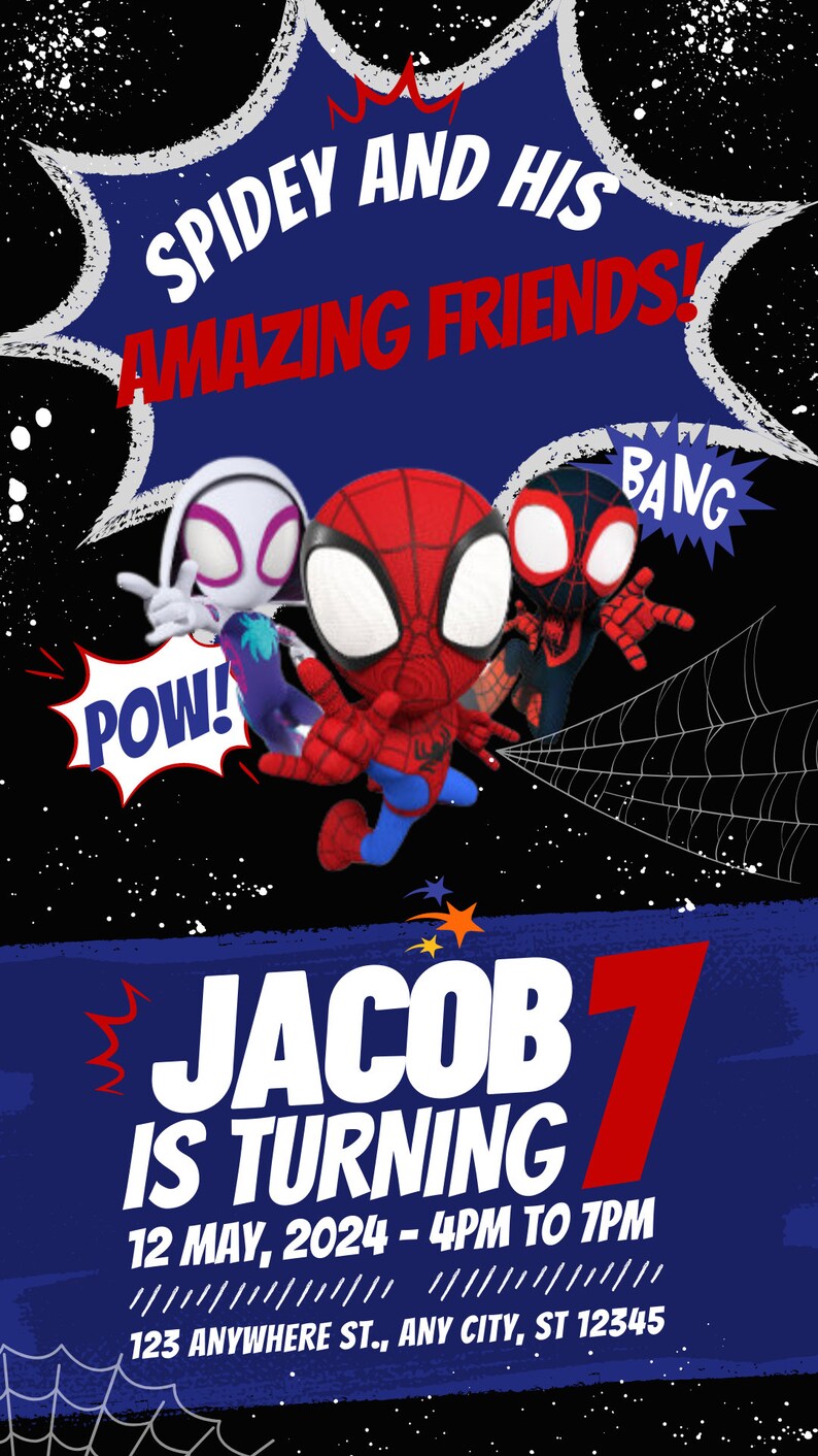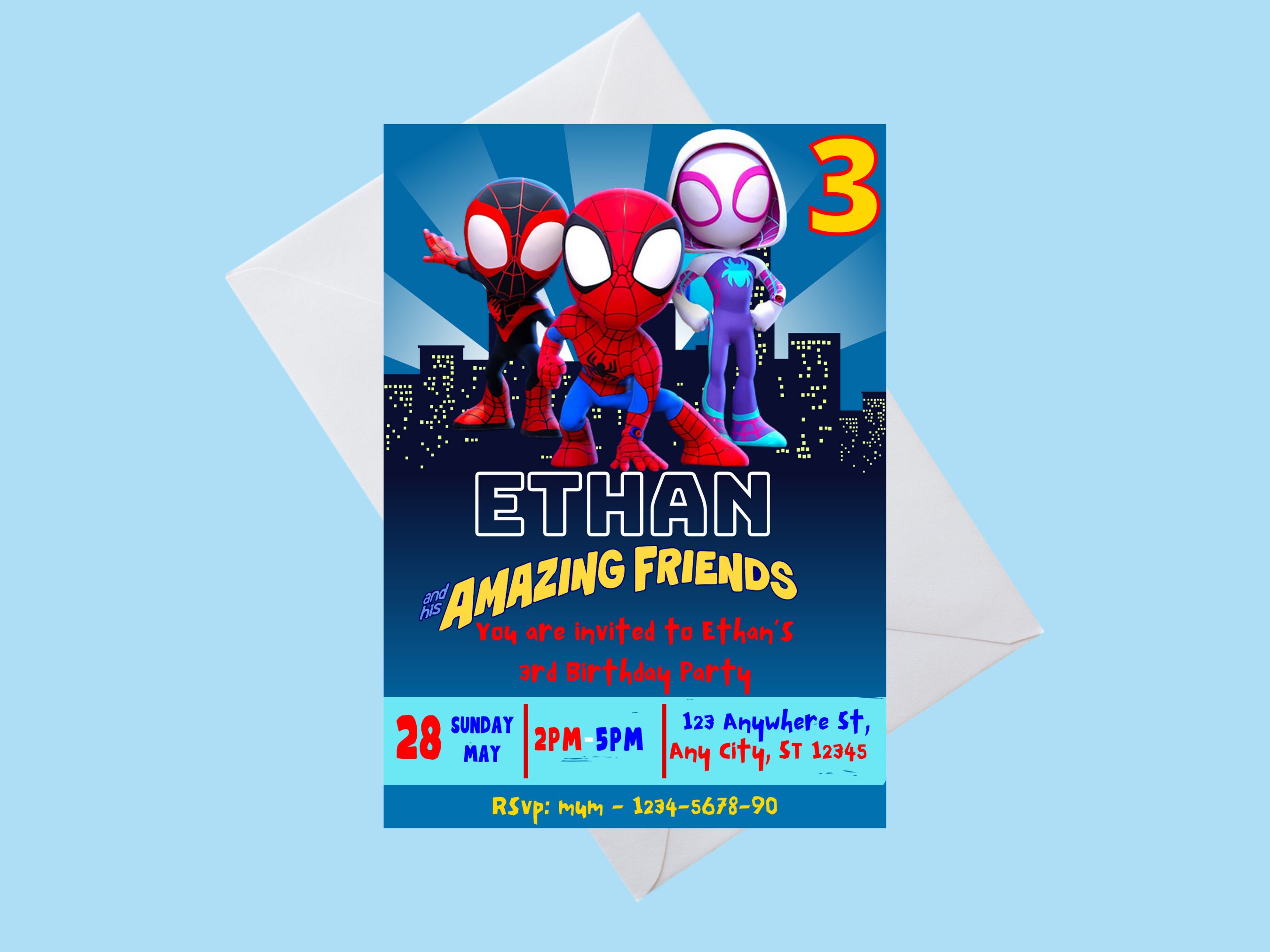 Digital Spidey his Amazing Friends Birthday Invitation template