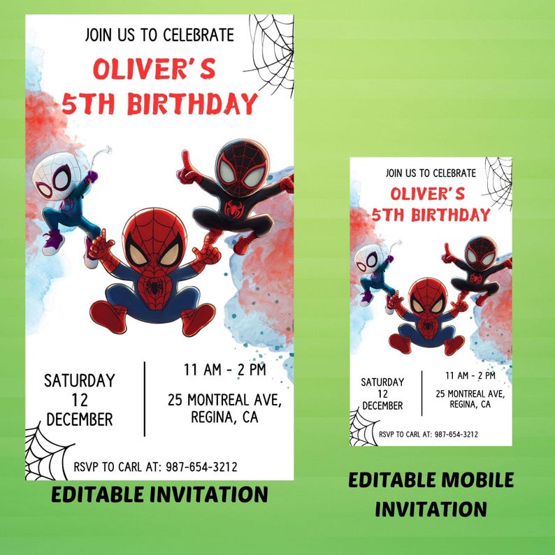 Spidey Birthday Invitation Template Canva 2 Birthday invitations