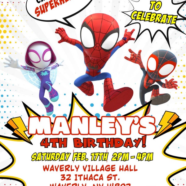 Spidey Birthday Invitation Spider Gwen Spiderman Spidey Etsy