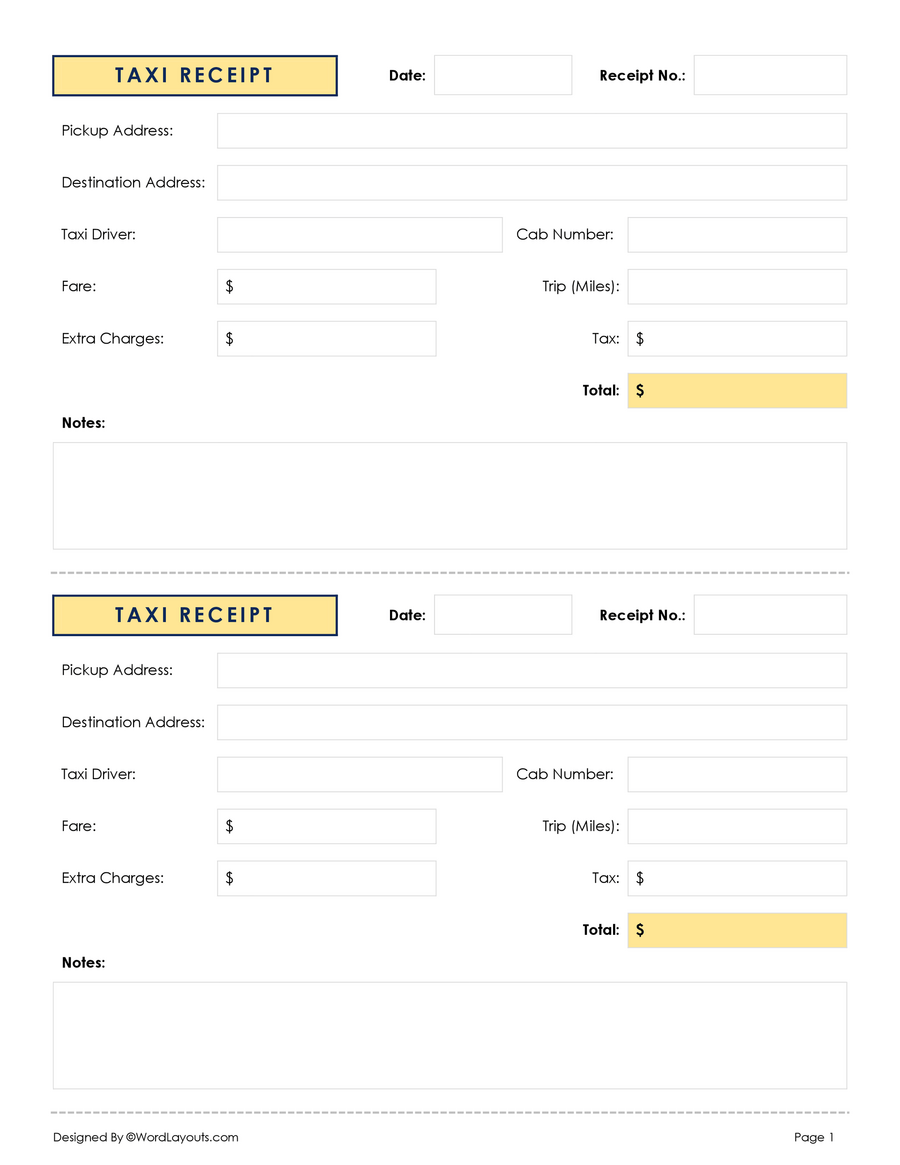Free Taxi Receipt Templates (Edit Printable) WordLayouts
