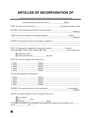 Free Blank Articles of Incorporation Template to Edit Online