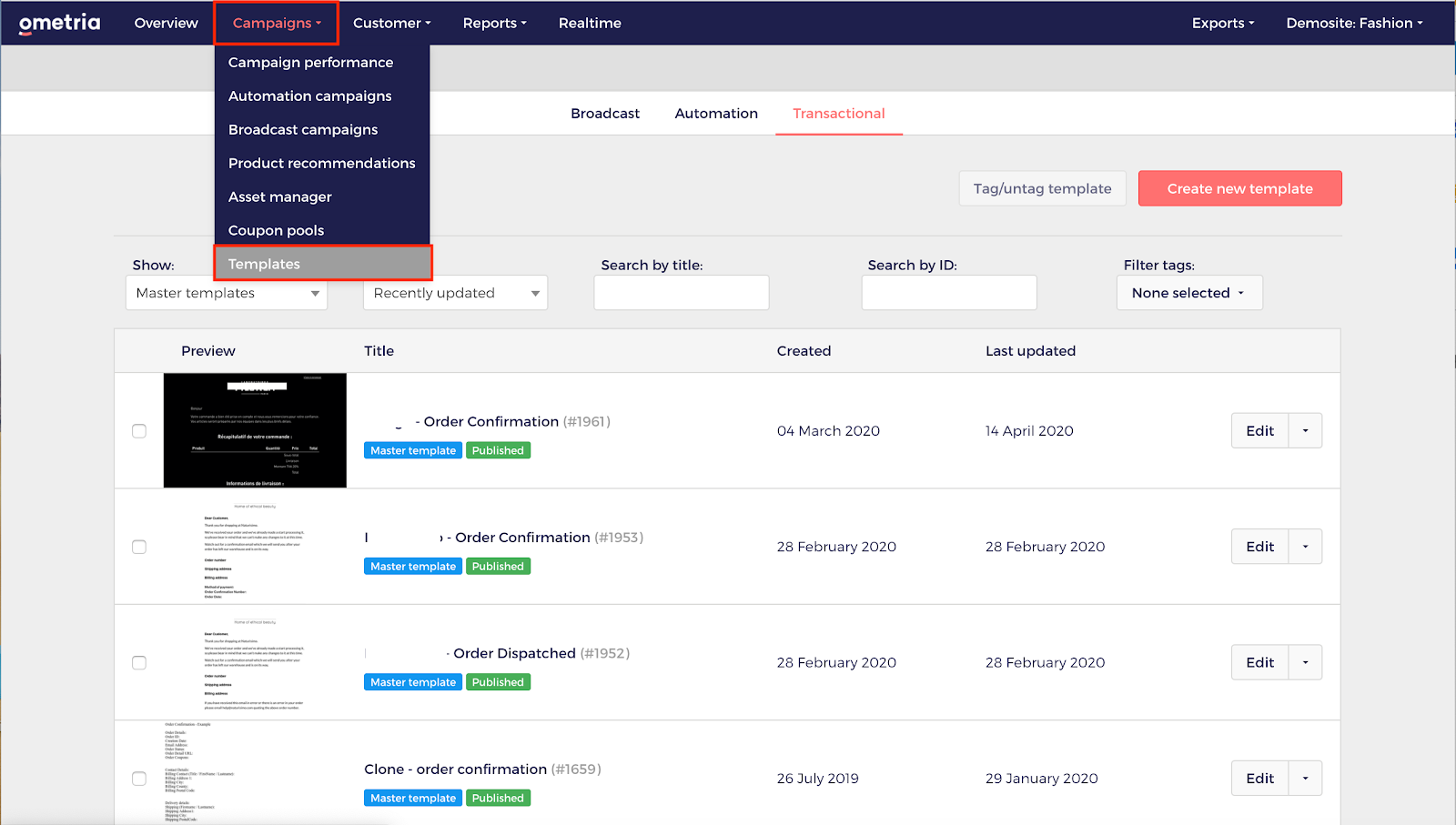 Transactional templates Ometria Help Centre
