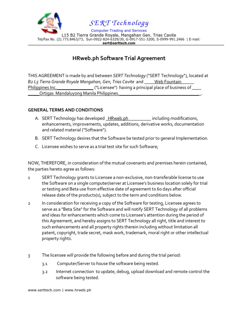 Sample Trial Software License Agreement Template Businessina Free Trial