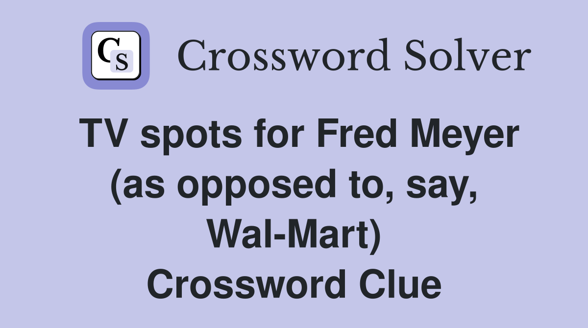TV spots for Fred Meyer (as opposed to say Wal Mart) Crossword Clue