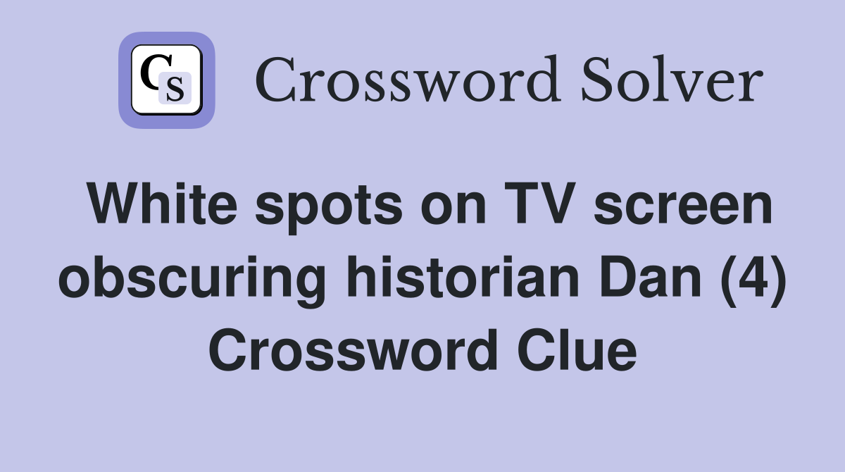 White spots on TV screen obscuring historian Dan (4) Crossword Clue