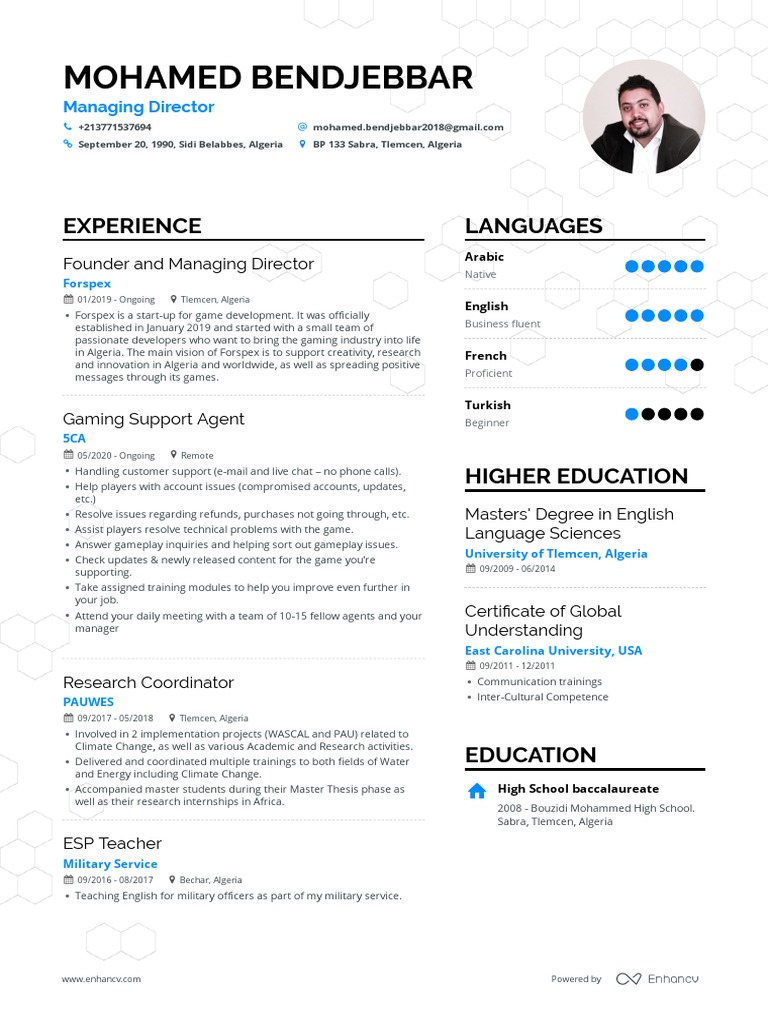 Mohamed Bendjebbar Resume PDF Algeria Communication