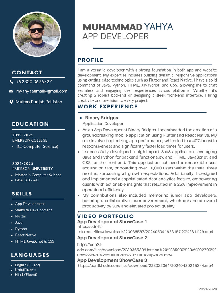 Blue Simple Professional CV Resume PDF Mobile App Web Development