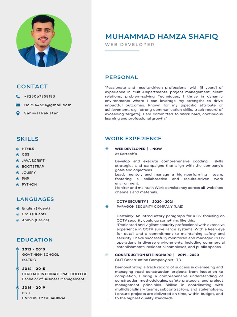 Hamza Resume PDF Closed Circuit Television World Wide Web