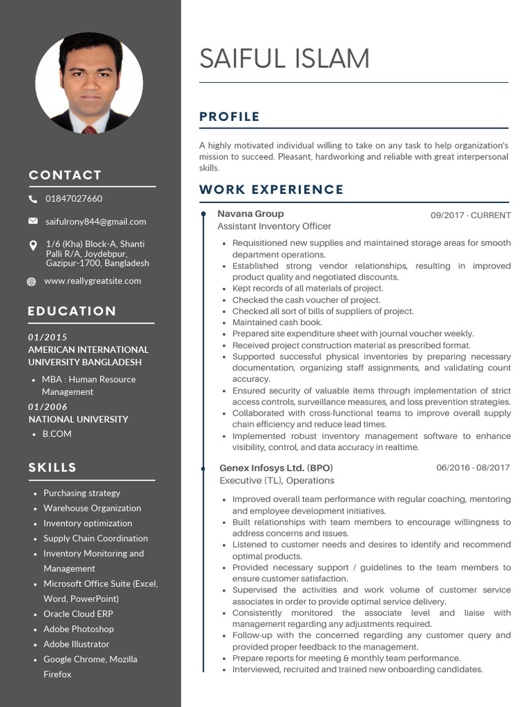 Simple Professional CV Resume PDF Supply Chain Inventory