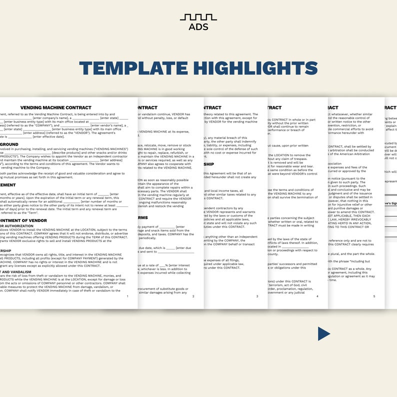Vending Machine Agreement Template Customizable Editable Contract Etsy