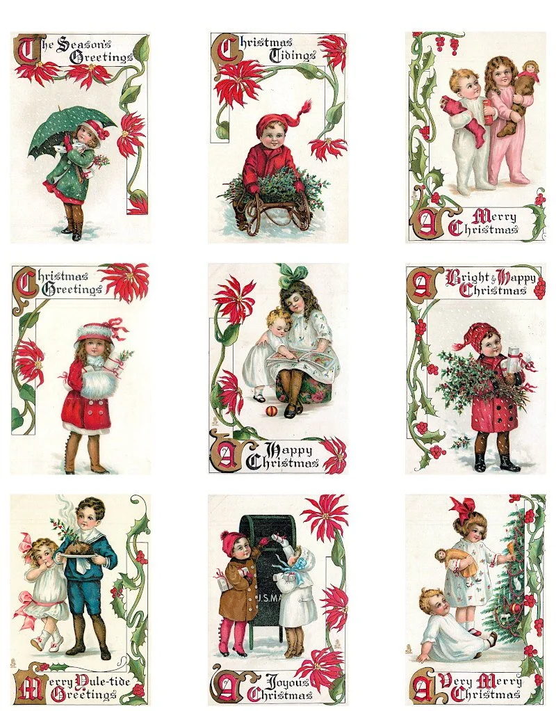 Free Vintage Christmas Printables Kids on Holiday Postcards for