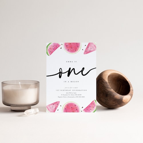 Editable One in a Melon Birthday Invitation Watermelon Invitation 1st