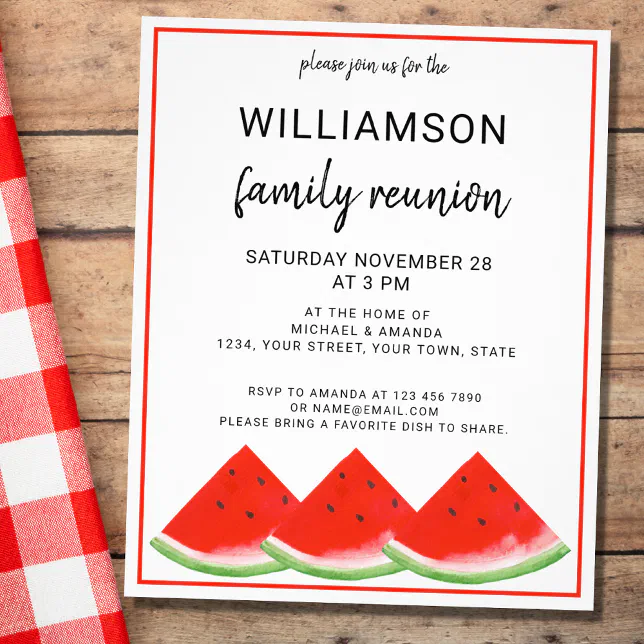 Budget Summer Family Reunion Watermelon Invitation Flyer Zazzle