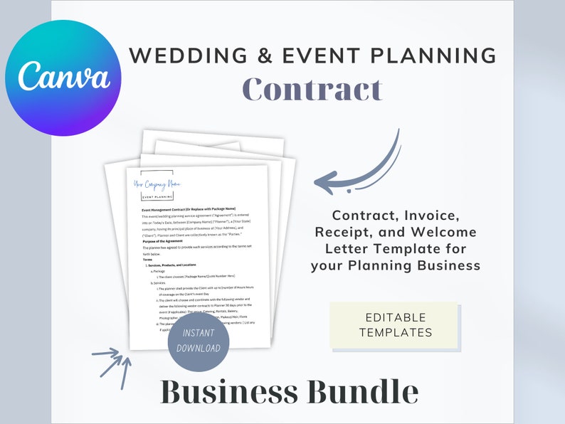 Wedding Coordinator Contract Template Invoice Welcome Letter Etsy
