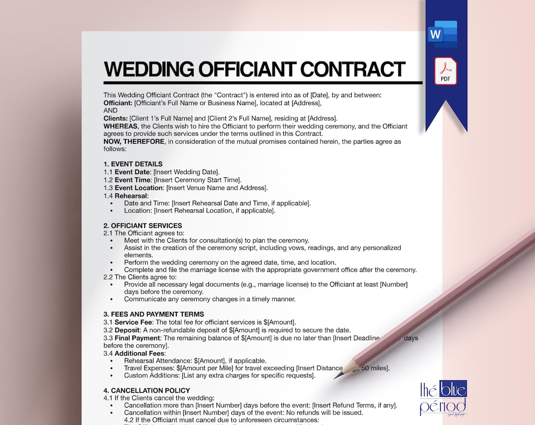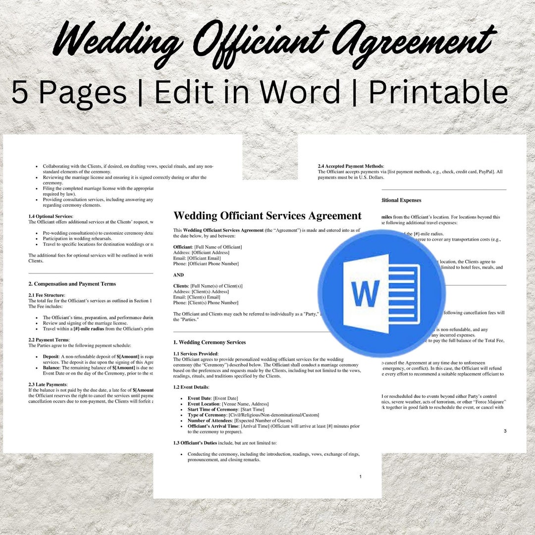 Wedding Officiant Contract Template: Editable Service Agreement (word