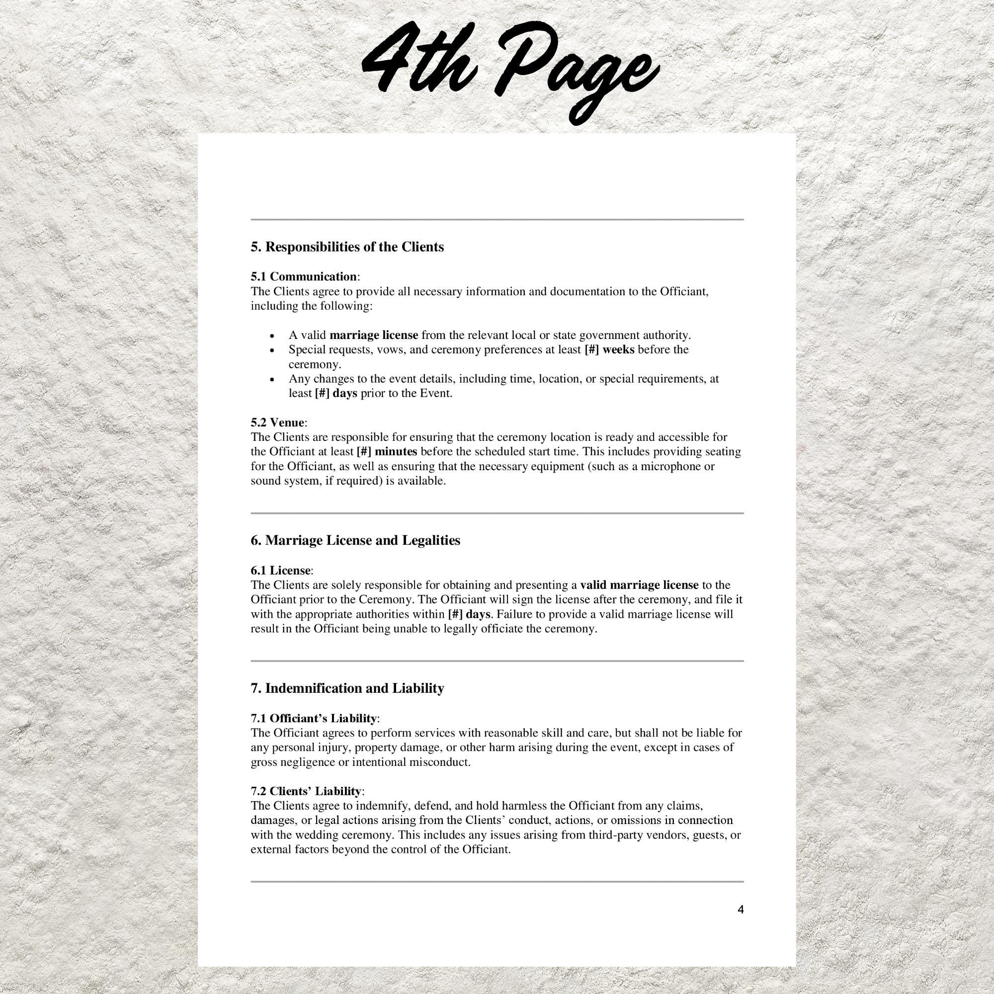 Wedding Officiant Contract Template Editable Marriage Ceremony Terms