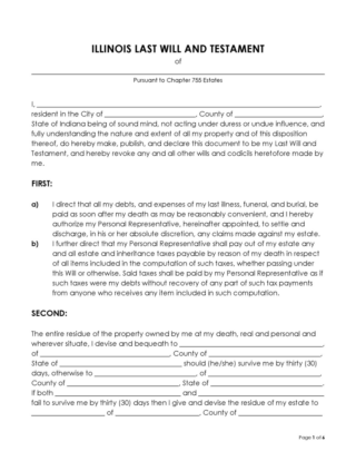 Printable Illinois Last Will and Testament Templates Forms (Word