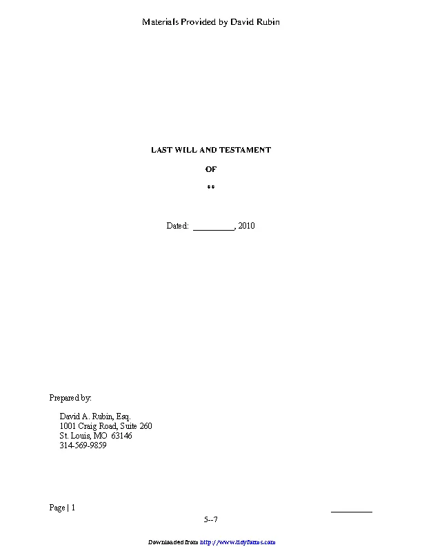 Free Missouri Last Will And Testament Form PDF 115KB 7 Page(s