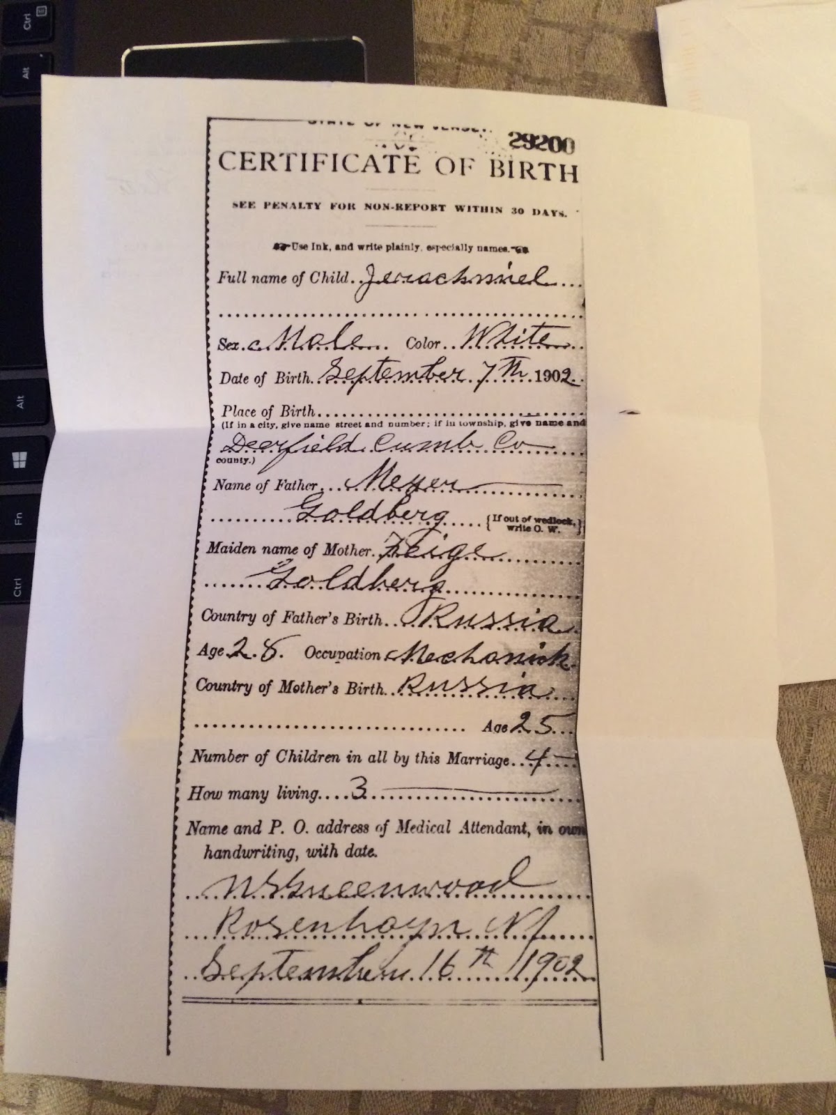 Schwartzbergs Mishpocha Blog: My Grandfather #39 s Birth Certificate Found