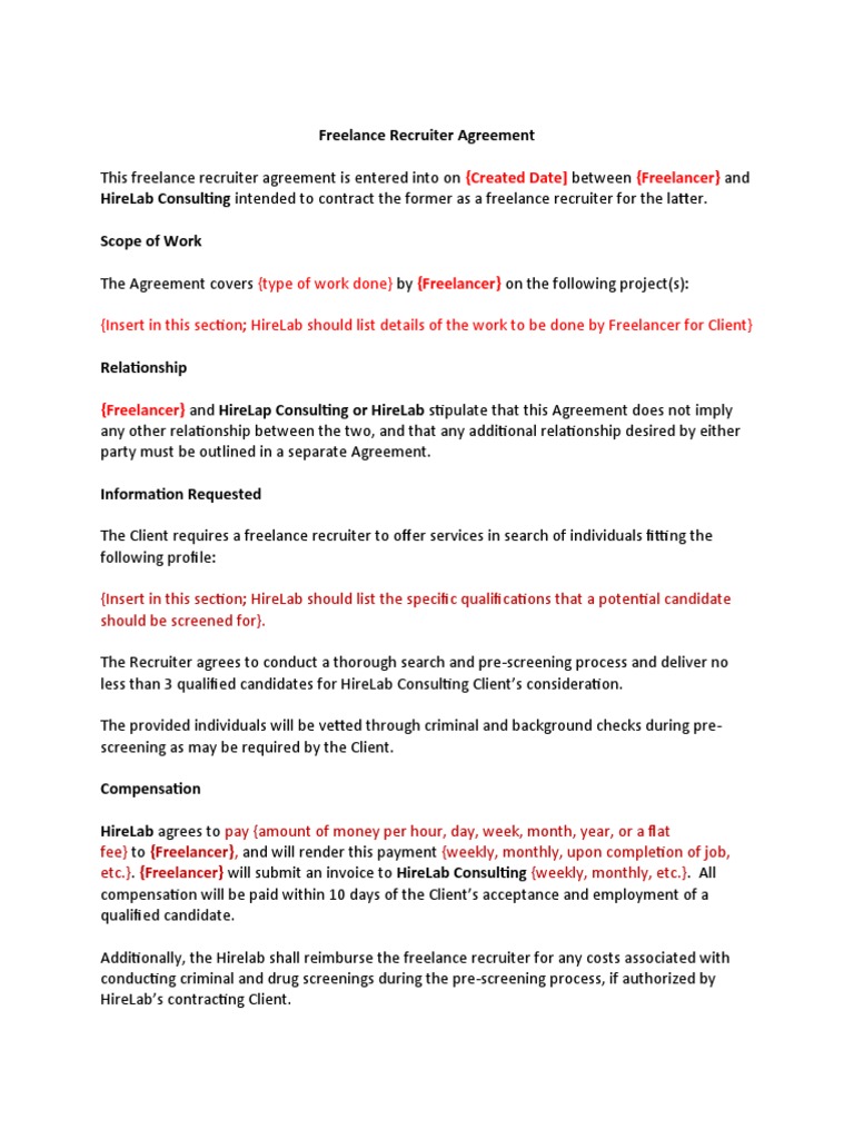 Freelance Recruiter Contract Template Edit Online Download