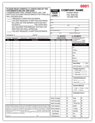 Free Auto Repair Invoice Template Excel Of Free Auto Body Repair