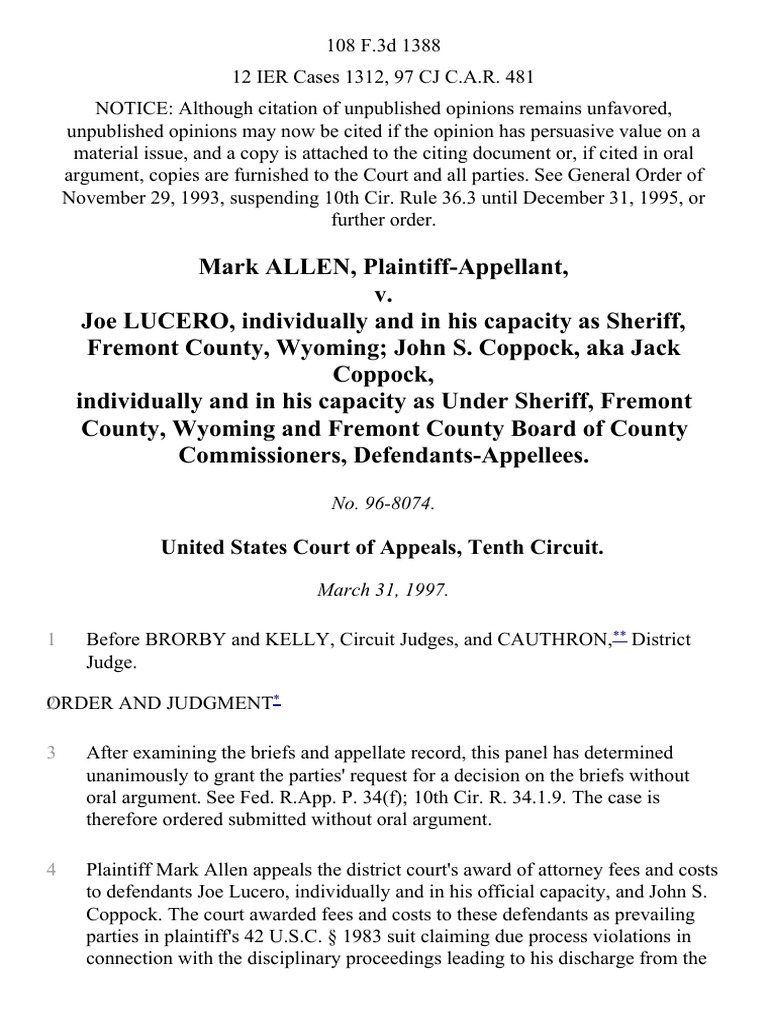 Mark Allen v Joe Lucero Individually and in His Capacity as Sheriff