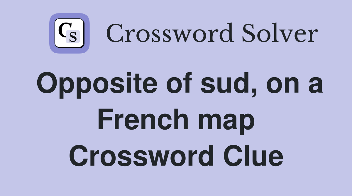 Opposite of sud on a French map Crossword Clue Answers Crossword
