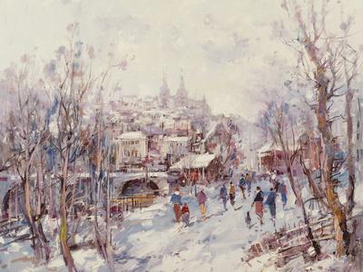 #39 Winter Scene in a French Cathedral Town #39 Giclee Print Heinrich