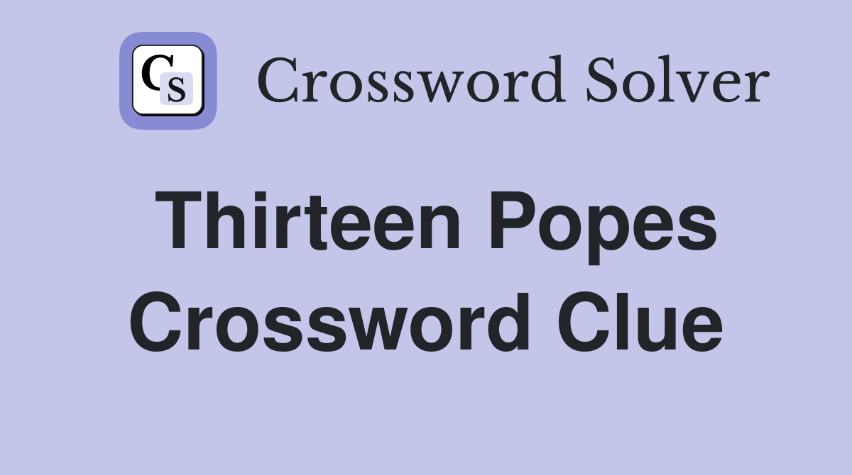 Thirteen popes Crossword Clue Answers Crossword Solver