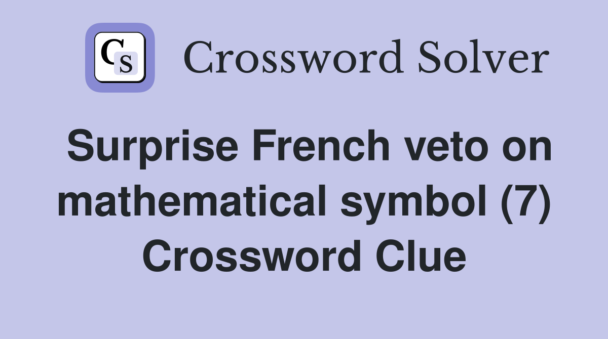 Surprise French veto on mathematical symbol (7) Crossword Clue