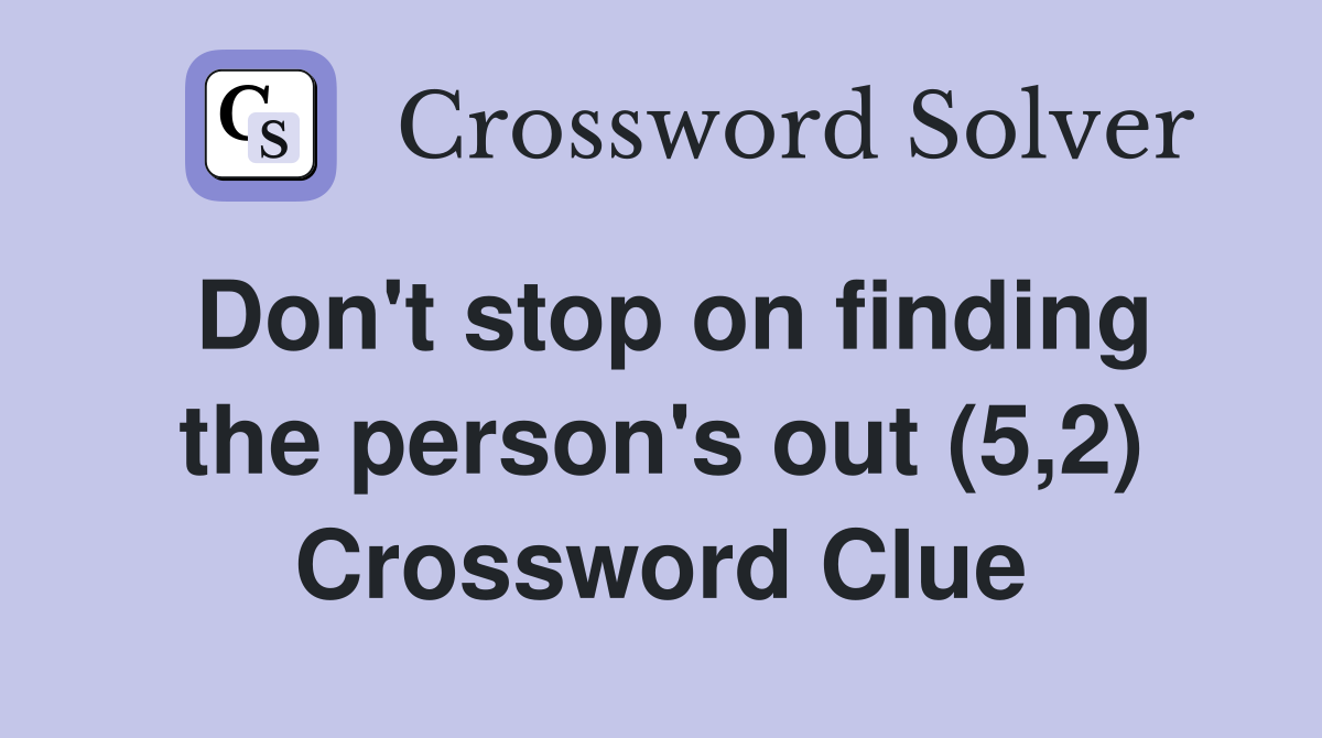 Don #39 t stop on finding the person #39 s out (5 2) Crossword Clue Answers