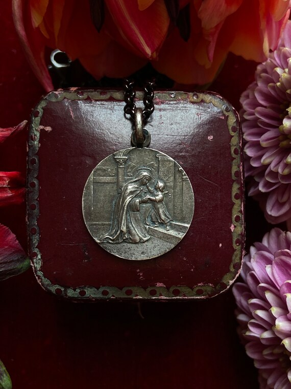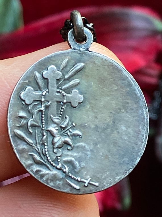 Antique French Holy Medal Pendant Jesus Christ and S Gem