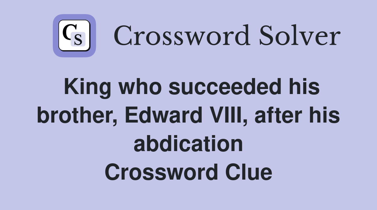 King who succeeded his brother Edward VIII after his abdication