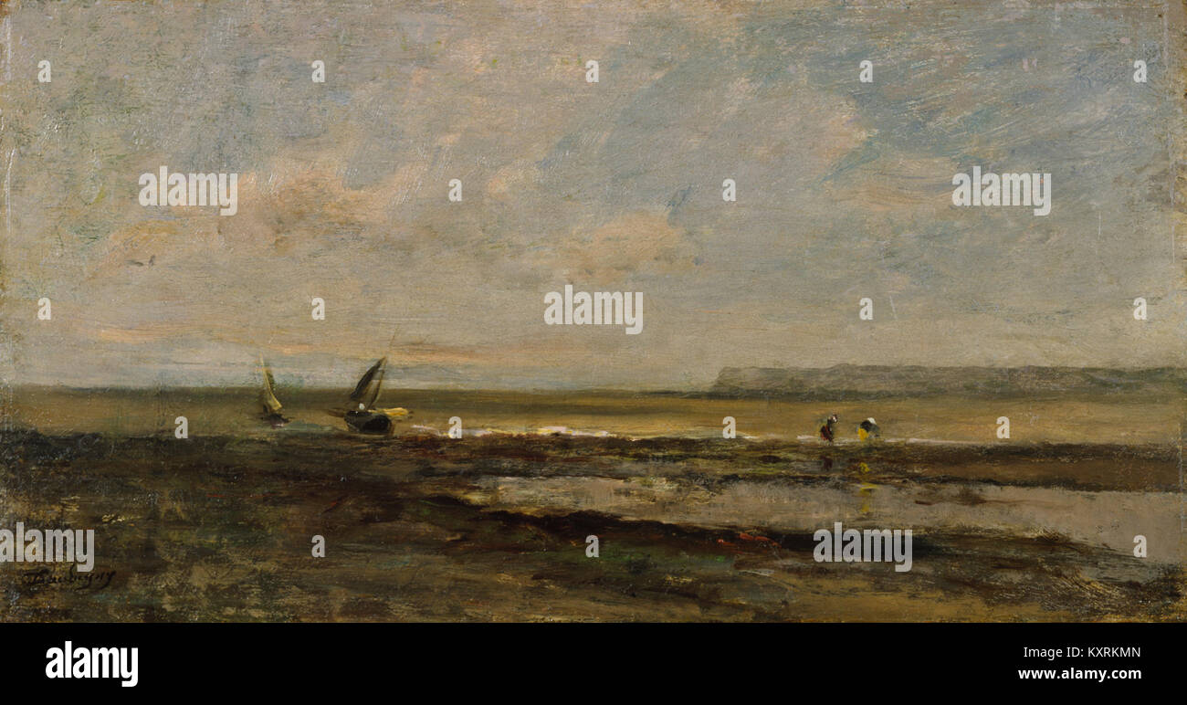 This painting by Charles François Daubigny depicts a serene beach scene