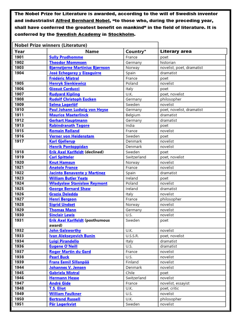 Nobel Prize for Literature PDF