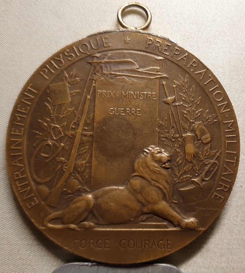 Seating on Canon French Military Award Bronze Art Nouveau Pendant Medal