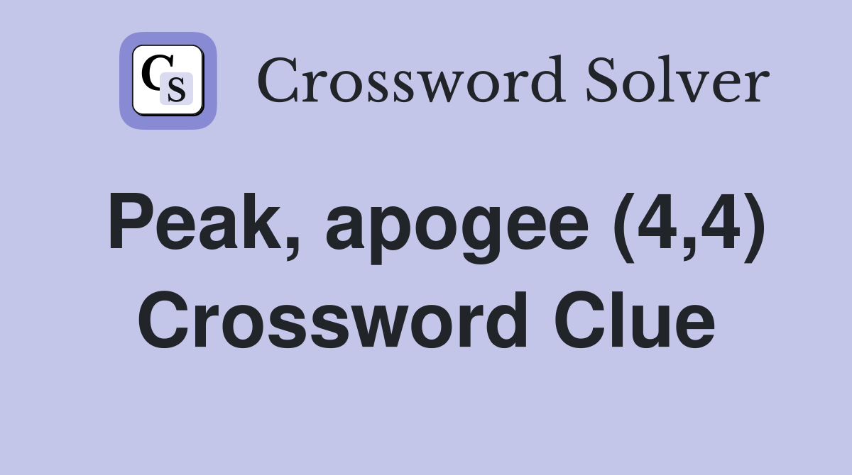 Peak apogee (4 4) Crossword Clue Answers Crossword Solver