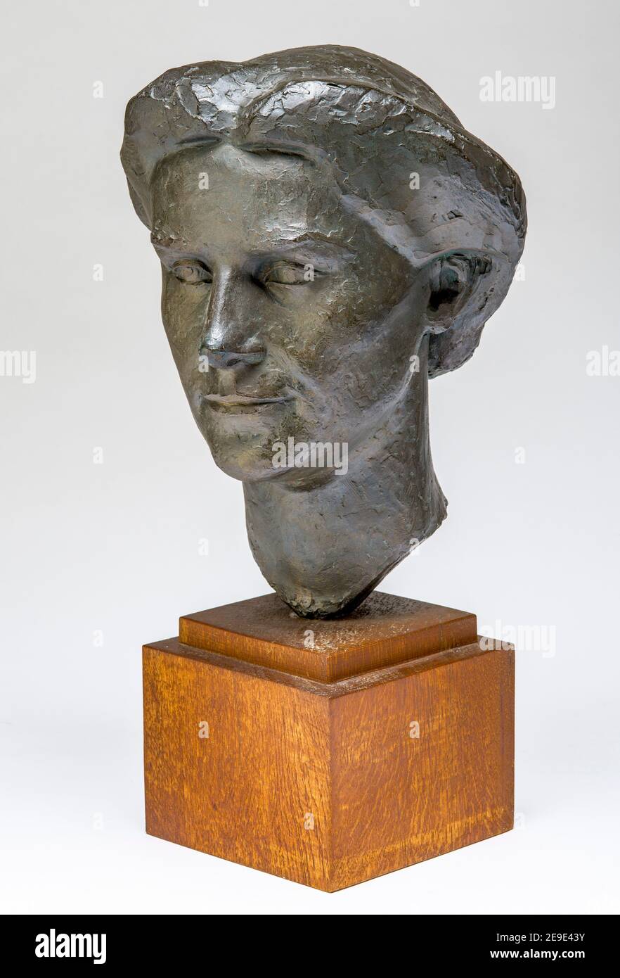 Aunt Loulette (artist s sister) patina plaster head sculpture by
