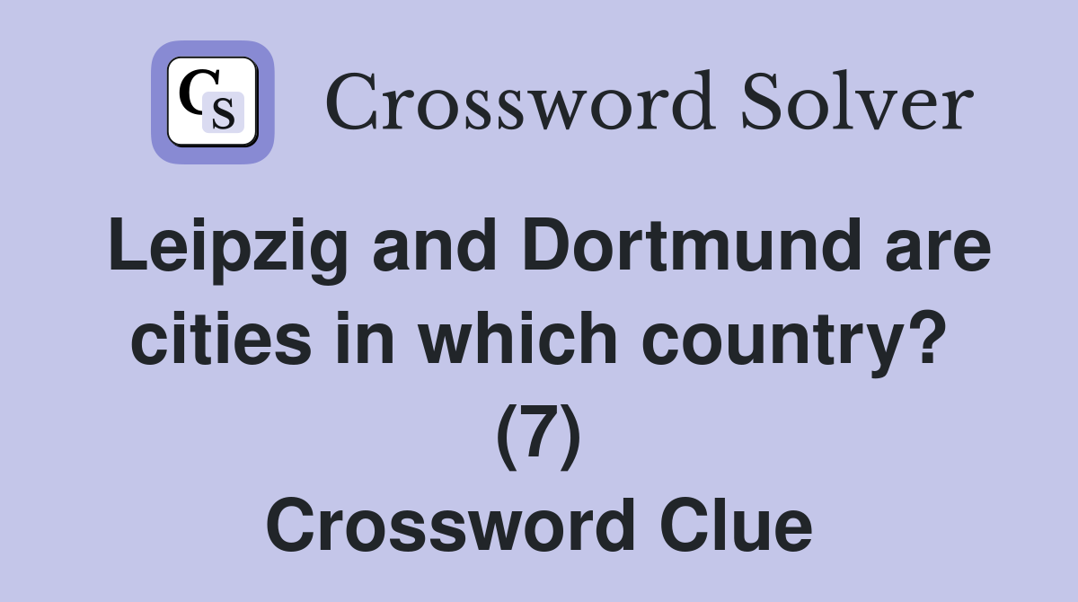 Leipzig and Dortmund are cities in which country? (7) Crossword Clue
