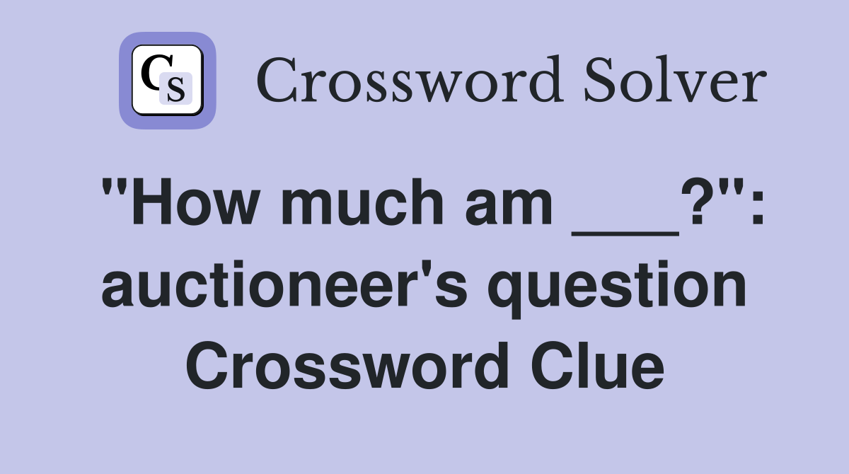 quot How much am ? quot : auctioneer #39 s question Crossword Clue Answers