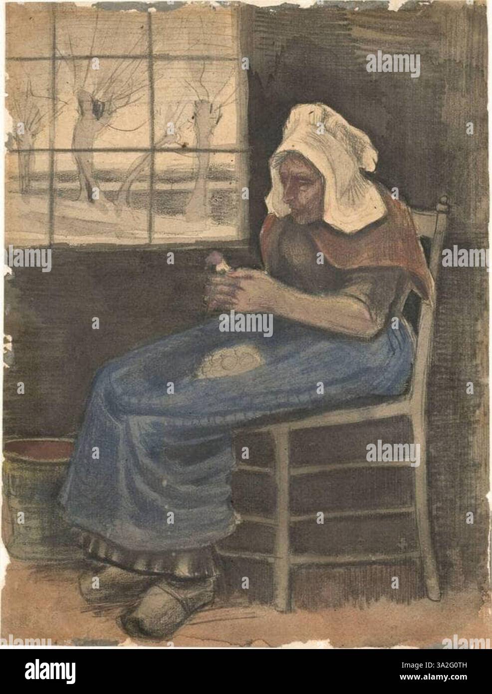A woman peeling potatoes in a rural setting captured with Van Gogh s